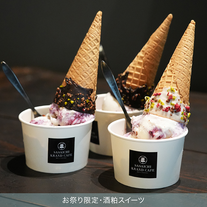 蔵元直営カフェ「SASAICHI KRAND CAFE」では、新酒まつり限定スイーツ「笹一酒粕チーズケーキサンデー スペシャル」が登場いたします!笹一の酒粕の芳醇な香りとチーズケーキアイスの爽やかな酸味が広がる、ここでしか味わえない一品です。